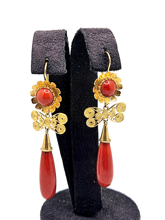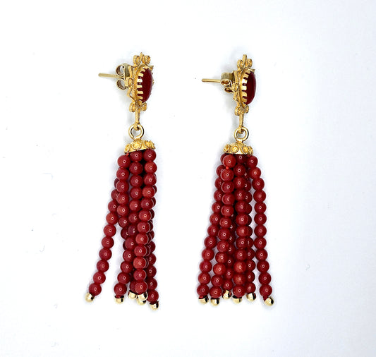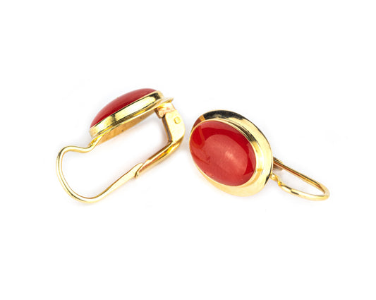 Earrings in gold and red coral from the Mediterranean (Sardinian Coral) with a leverback setting in classic style