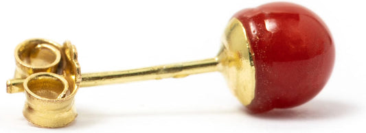 Earrings in 18 carat gold and real Mediterranean coral (Sardinian Coral) worked with pellet - sphere mm 5.5-6